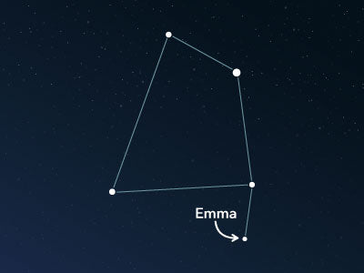 In many star maps, the constellation is visualized with its four main stars connected to each other in an irregular quadrilateral. A connection to a fifth star is often drawn, representing Raven's beak.