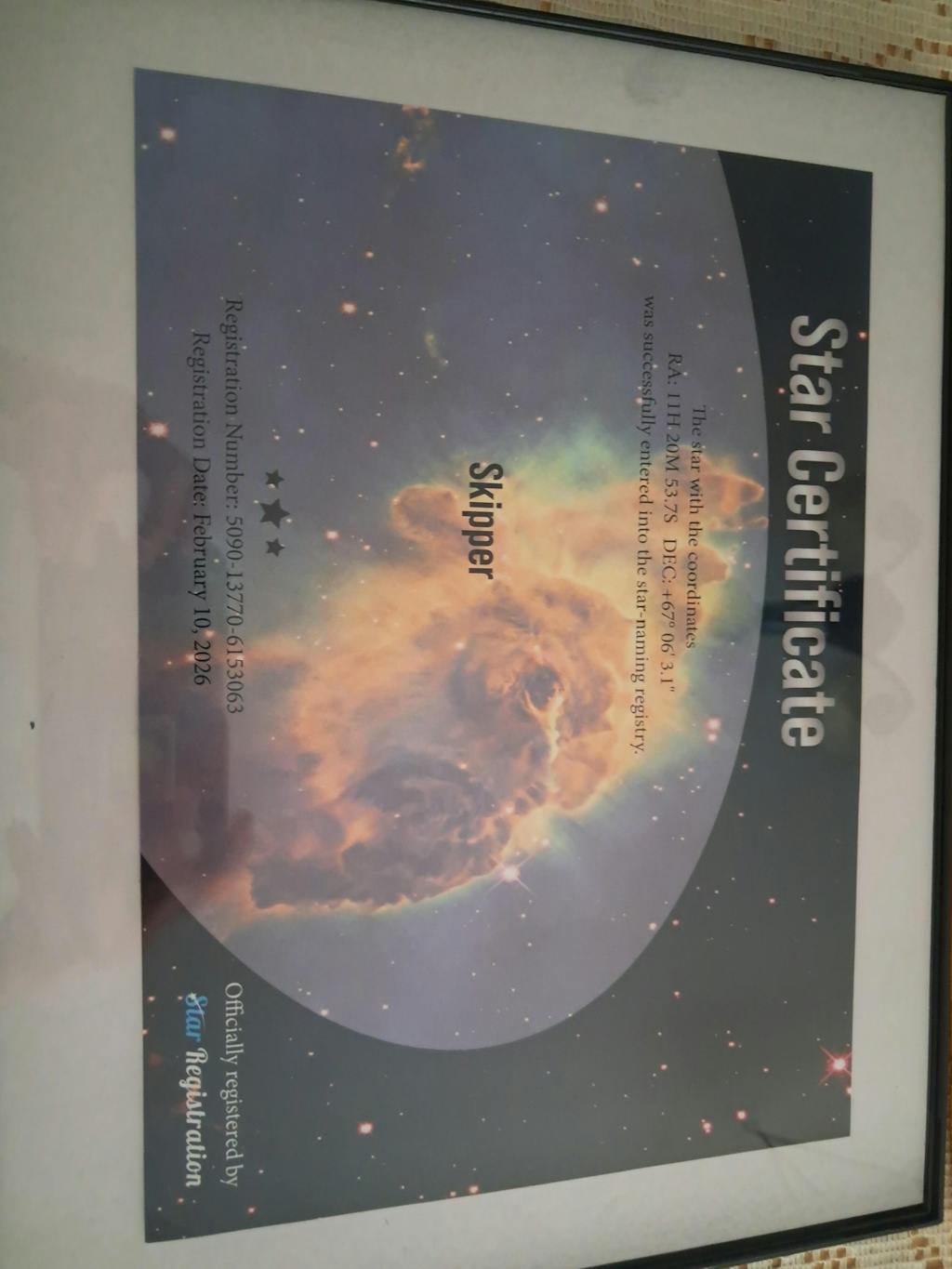 I couldn’t have been happier with the star That was chosen. my wish is for that the person that the star was bought for will one day see past the star to the maker of it!!