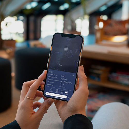 Moreover, you'll gain access to our exclusive app, enhancing your star-searching experience. The app uses your phone to guide you, showing exactly where to look in the sky to find your named star at any given date and time.